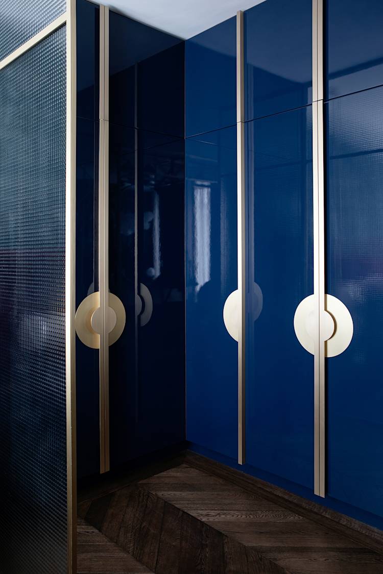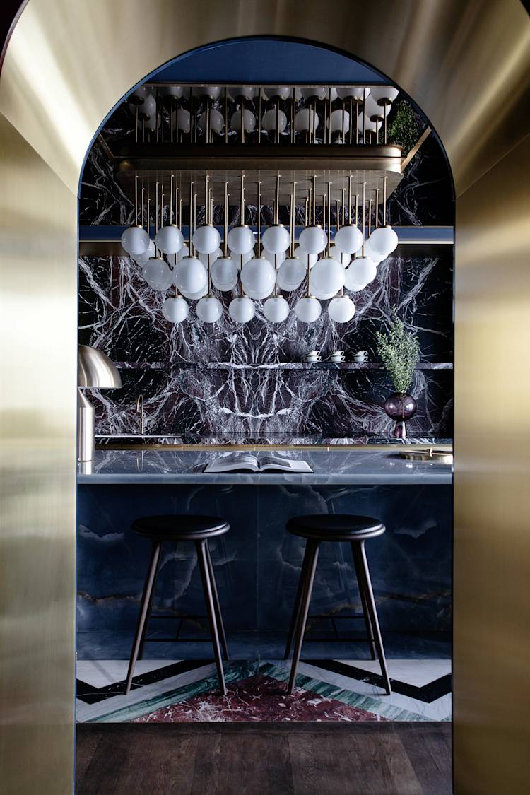 The redesign turned everything on its head, with a reimagined layout, and experience, maximising space and visual impact at every turn. Throughout, jewel tones and luxe tactility and materiality were used, culminating in a kitchen come bar area featuring brass-clad surfaces and a dramatic blue onyx island. The client’s covetable designer fashion collection inspired the lounge, while their energy and effervescence informed the overall design.
