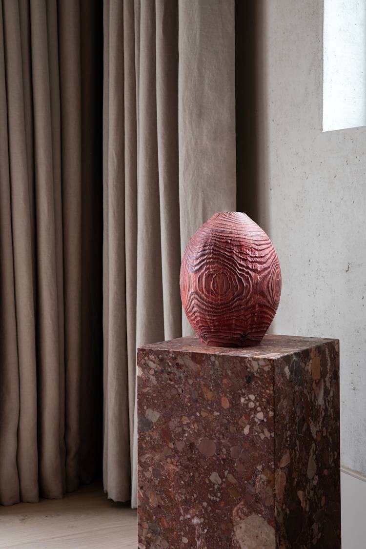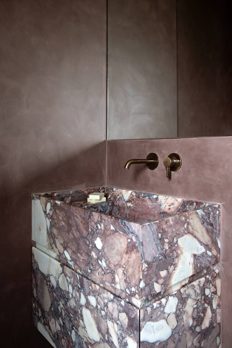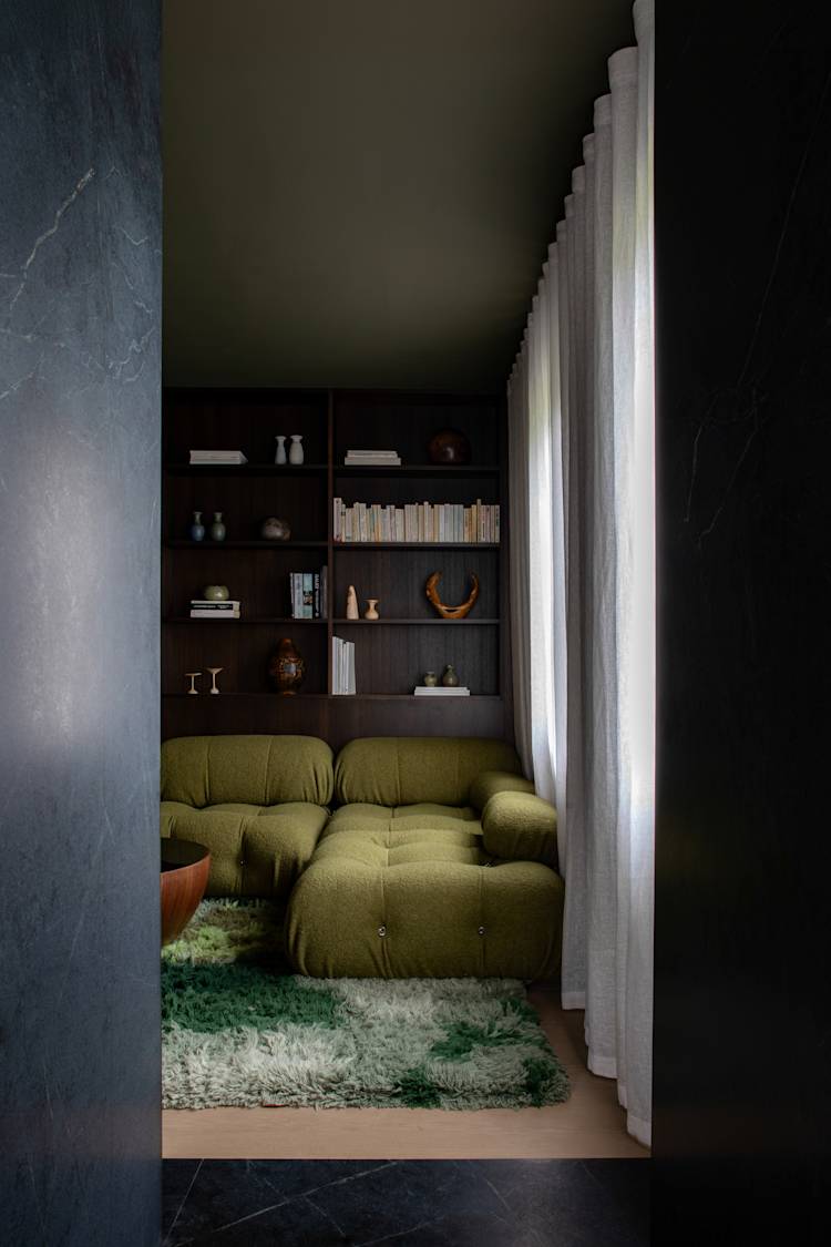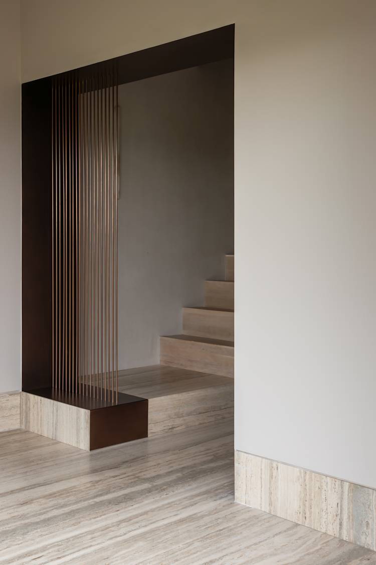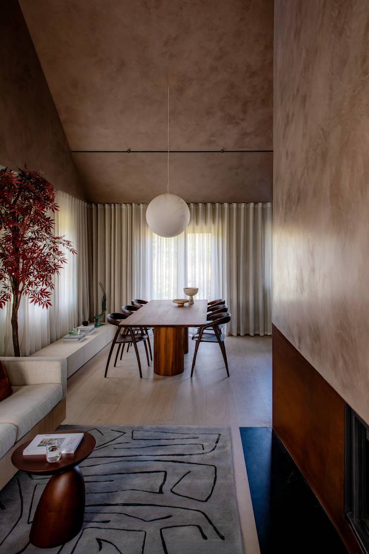 The Tonal Haven design aimed to create an intimate, serene space that harmonizes with its Connemara landscape setting. Emphasizing tonal cohesion and connectivity, the design integrates hidden doors and natural stone, celebrating material textures and adding depth with polished plaster and layered surfaces.