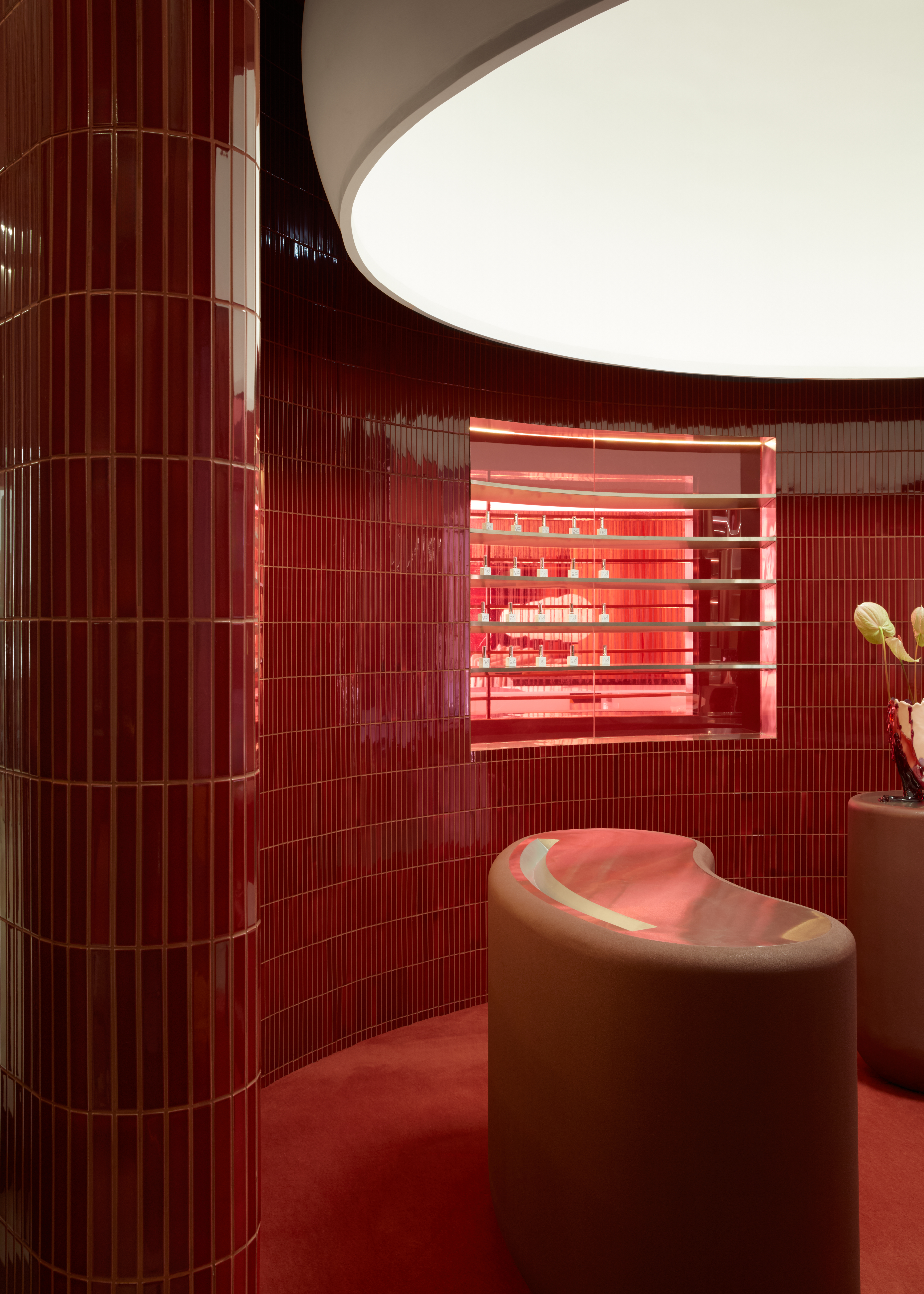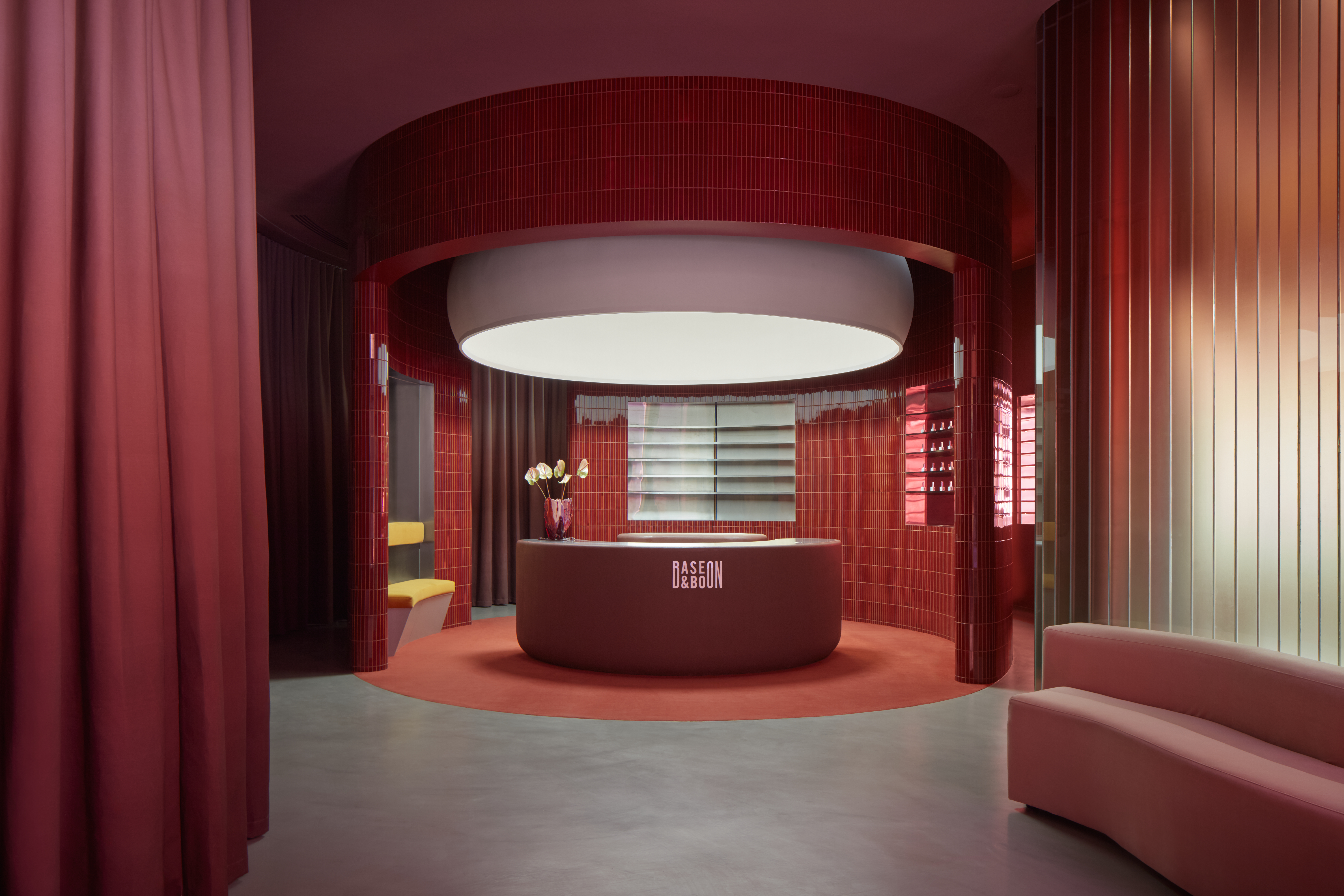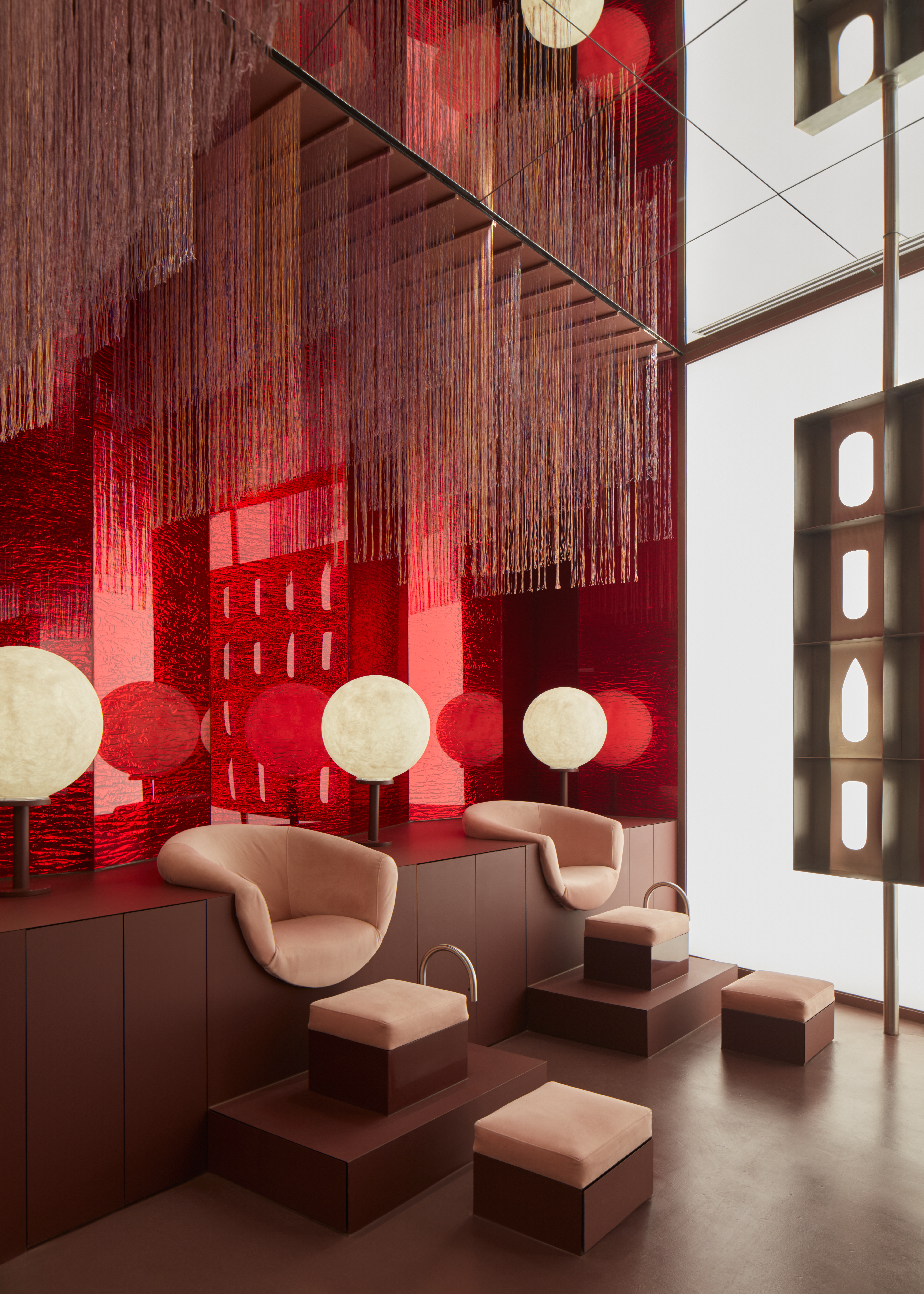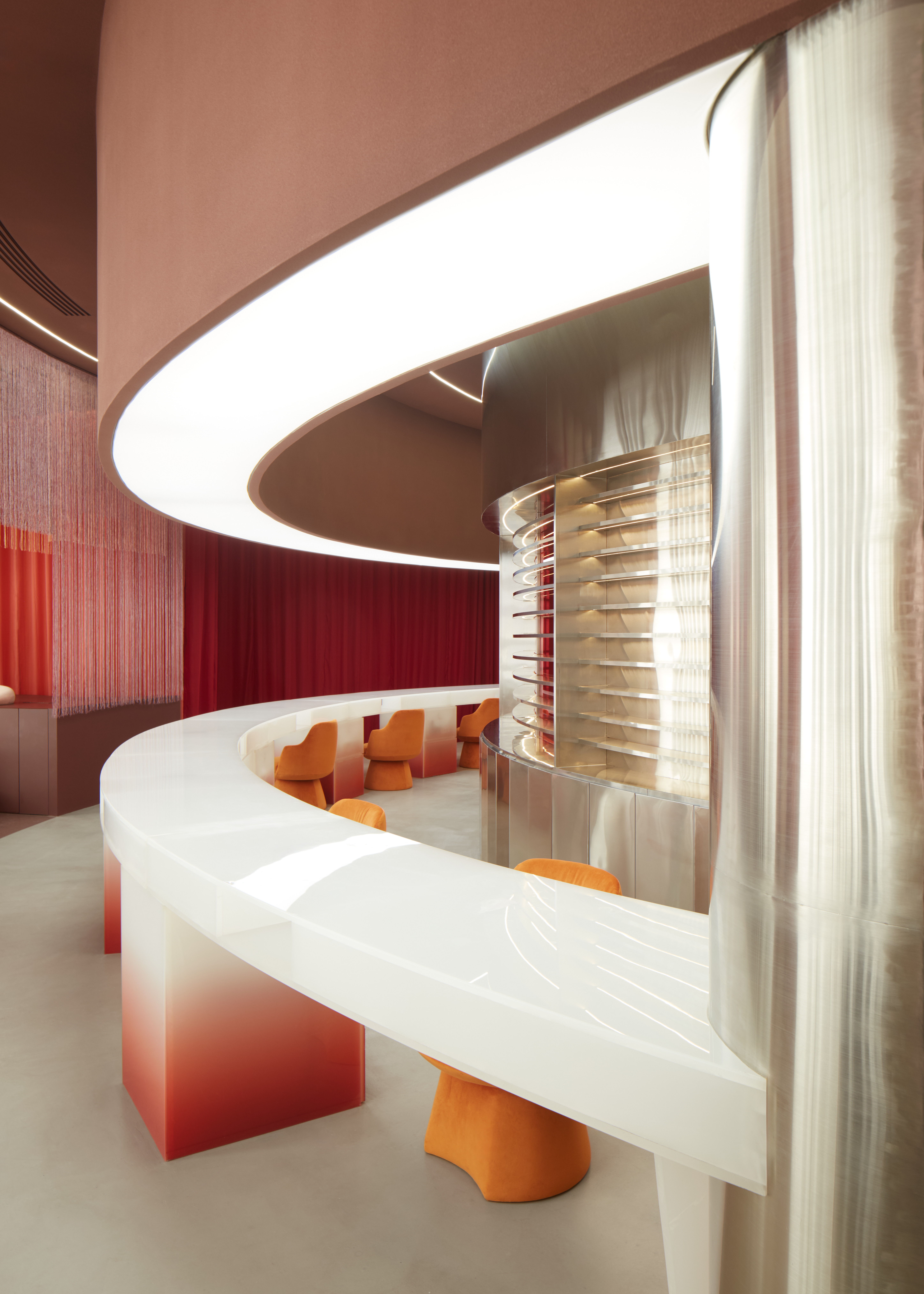 The salon’s concept focuses on inclusivity and innovation, with futuristic jewel tones and unexpected material combinations infuse energy, reflecting Base & Boon's visionary evolution. Architectural elements like hidden doors and dramatic catwalks create a captivating journey.
